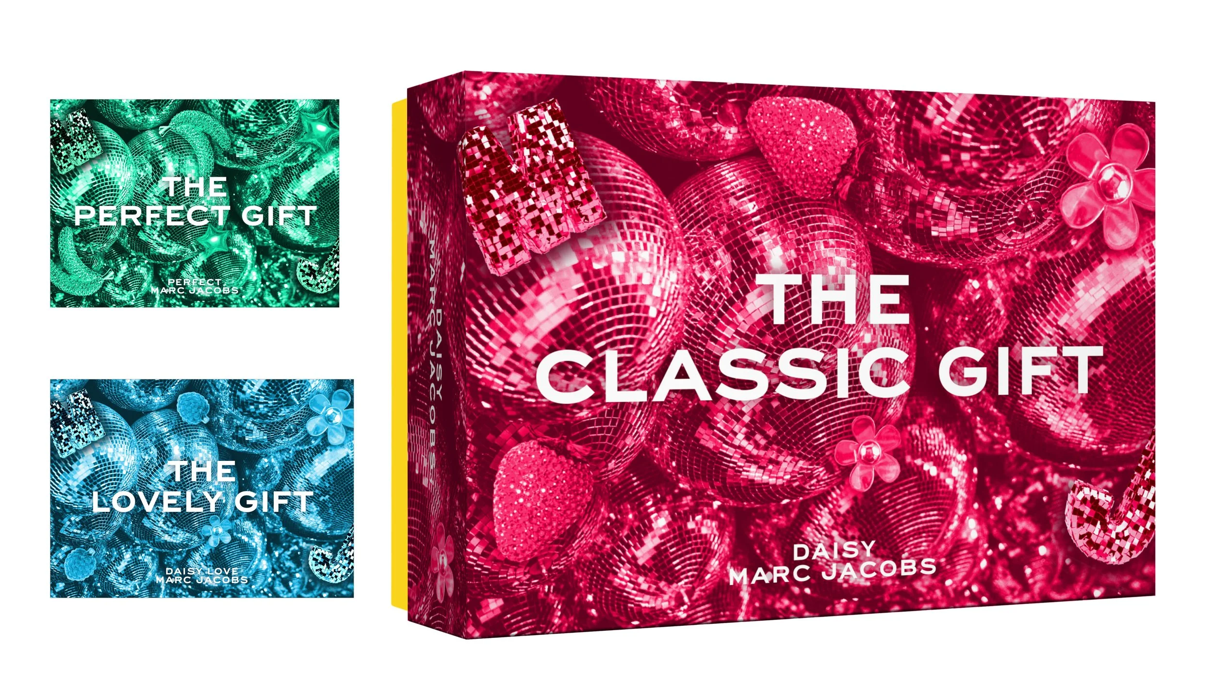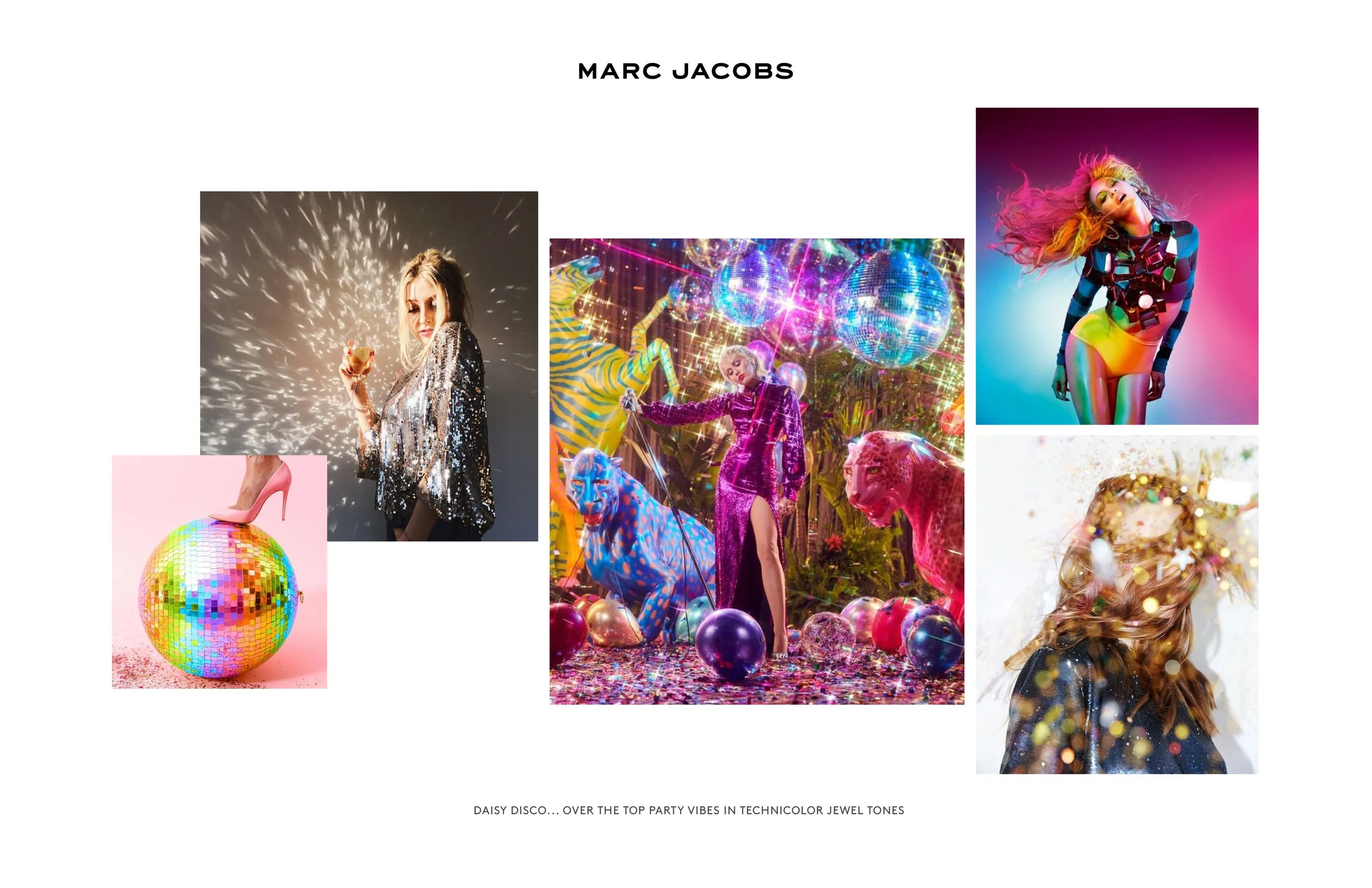 brief: lean into the experience of “dress up”, fantasy and exuberance during the holiday season. with 2 themes (logomania and disco), the goal was to accentuate a playful and colorful design for the holiday season. the final design involved working with a 3d agency specializing in CGI to create a sequin pattern printed on eco mylar stock.