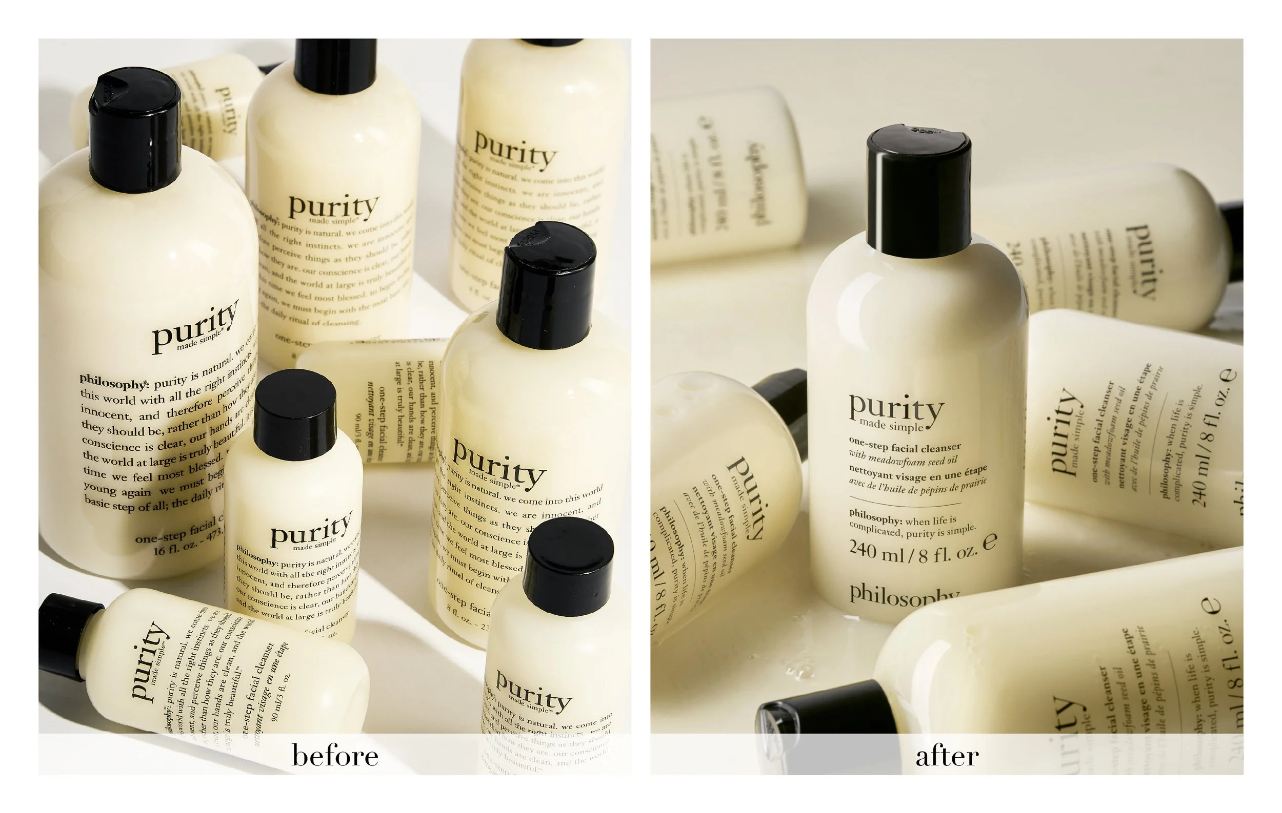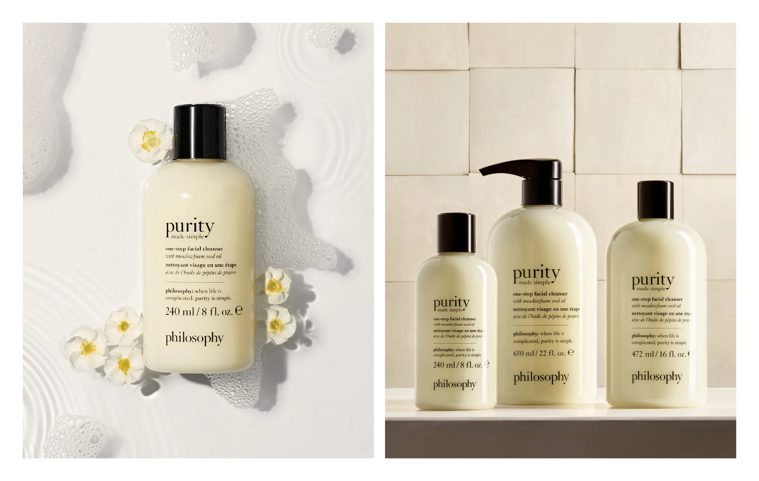 brief: support the reformulation of purity cleanser without parabens by redesigning the packaging with a cleaner minimalistic look. with the purity cleanser being the #1 selling skincare item of philosophy, this was the start of redesigning the entire philosophy brand.